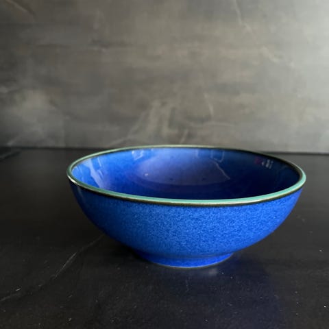 Selger Denby-fat, 22.5 cm. Kr 100. Fatet er ubetydelig brukt, stått og samlet støv i skapet.