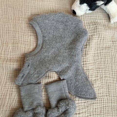 WoolLand barn balaclava i grå farge. Strl 2 som tilsvarer 1-2 år