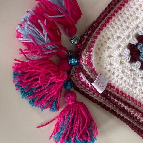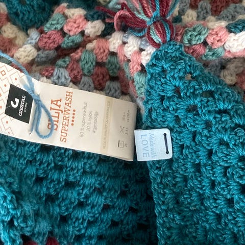 C2C heklet hjertepledd 💛 Ca 115 cm bredt og 160 cm langt 💛 Bunnfargen er heklet i merinoull og hjertene i 100% ull 🖤