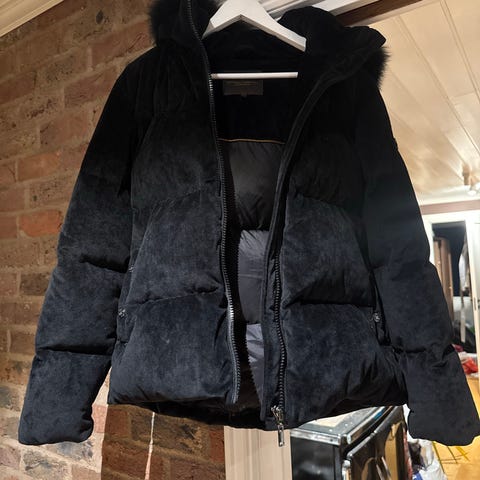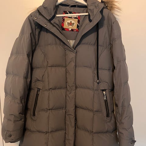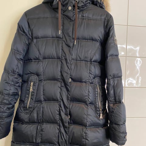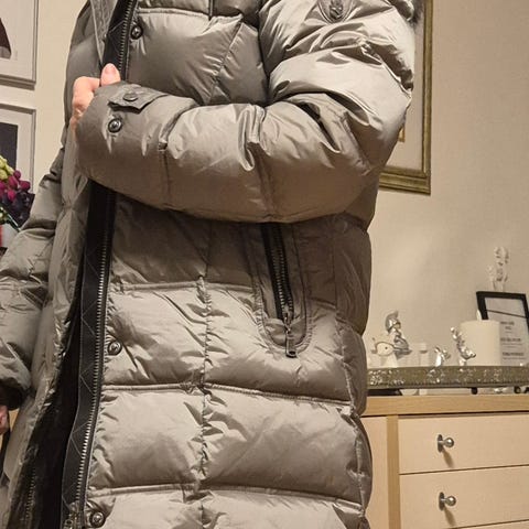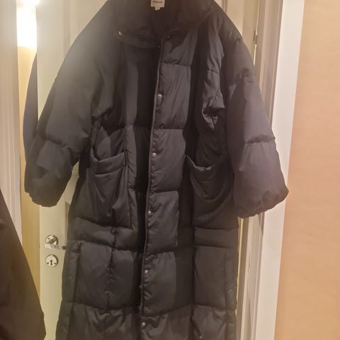 Kåpen/jakken rekker til knærene.Har 3 lommer.Former seg etter kroppen.Ser fin ut på🙂Utrolig behagelig på og varmer godt.Den har også hette. Dessverre passer dem meg ikke lenger og derfor selger jeg den.