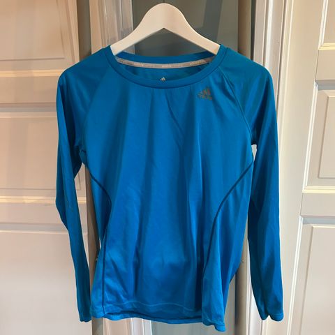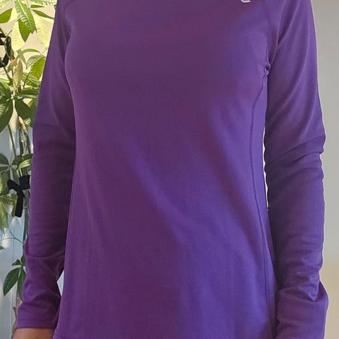 New Balance løpetrøye for dame i størrelse L. Trøyen har lange ermer og er laget i et lett materiale egnet for løping. Fargen er blå med detaljer i lysere blåtoner.