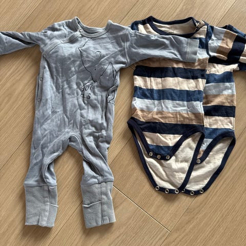 Selger ett sett med 2 bodyer og 1 bukse fra Hust and Claire i str 80. Oppleves litt lite i str. Eneste anmerkning jeg kan finne er en veldig svak flekk på den en bodyen, men ses nesten ikke(se bilde). Selges samlet