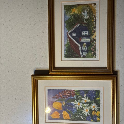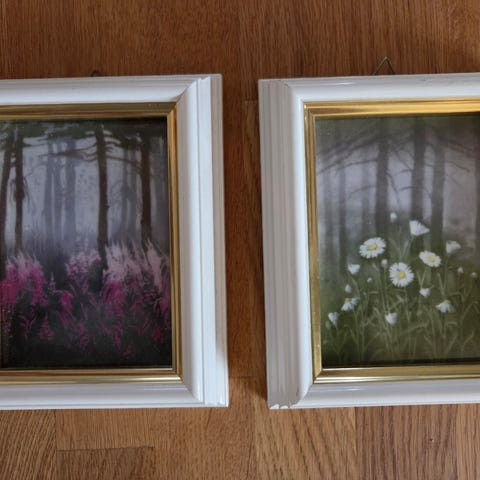 Tre vakre akvarellbilder i lyse, delikate farger. Passer perfekt til stue, soverom eller gang. I god stand og klare til å henges opp.