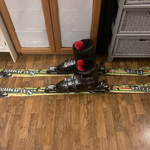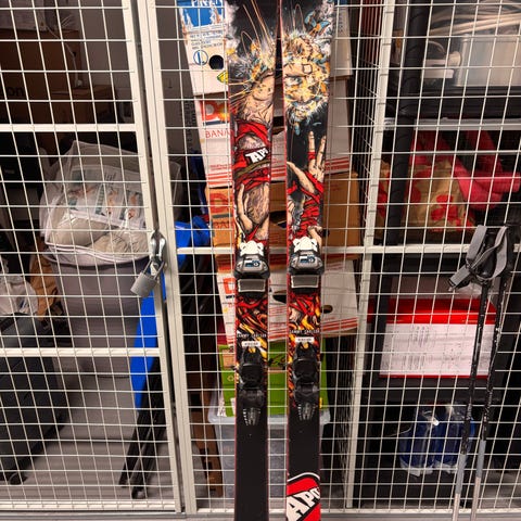 Selger et par brukte amplid twintip ski med marker bindinger. Skiene er hele og har kun små riper i sålen, stålkanten er hel.