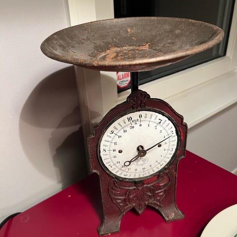 Antikk butikkvekt fra Viig & Vraalsen Kristiania selges.