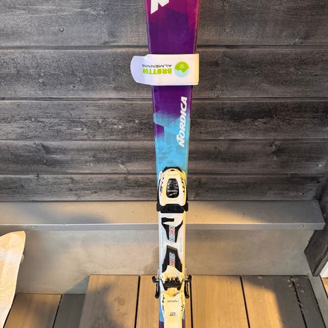 Brukte Nordica ski 107 cm og støvler 200-215 mm (størrelse 20-31).