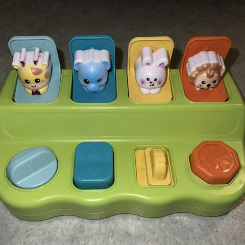 Sett med byggeklosser i tre fra Jabadabado. 50 klosser i forskjellige fasonger, farger og mønster. Pent brukt og i god stand.
