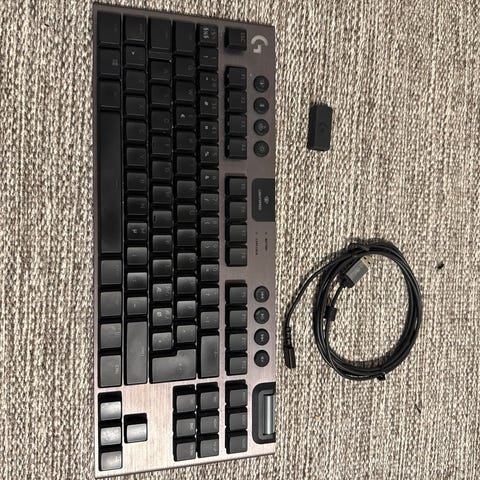 Logitech K400r trådløst tastatur med integrert touchpad. Norske taster. Brukes gjerne til HTPC eller lignende. Det er trådløst og batteridrevet, med mottaker som kobles til USB-port.