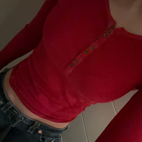 Selger denne søte tettsittende henley toppen fra Hollister i 2000s stil. Helt ny, har ennå lappen på. Kun prøvd på.