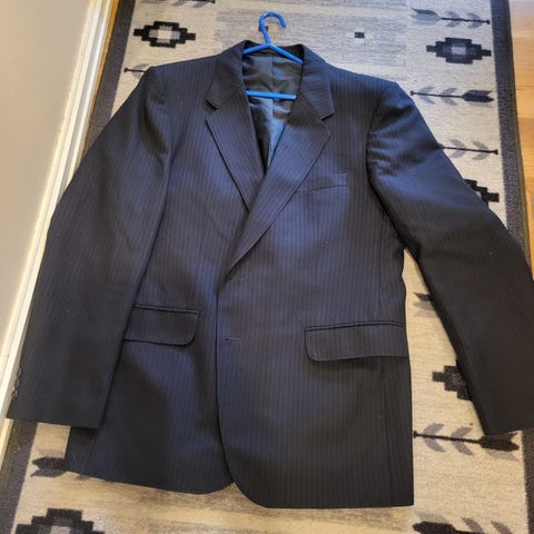 Dressen har krympa i skapet så den ble for liten for meg . Ellers er dressen brukt 3 ganger og er kjøpt på giovanni sandefjord. Det ull / poliester . Dressen er like fin som ny .