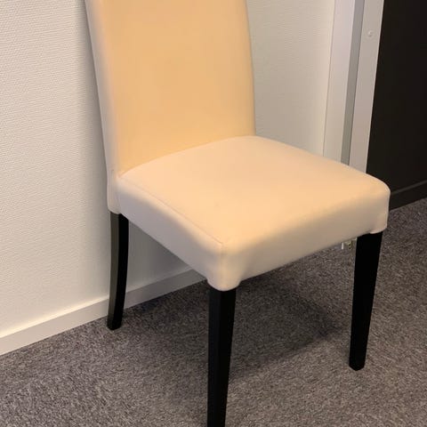 Noe karteklor på stolene, derfor selges de billig. Nye trekk kan kjøpes hos utvalgte forhandlere.