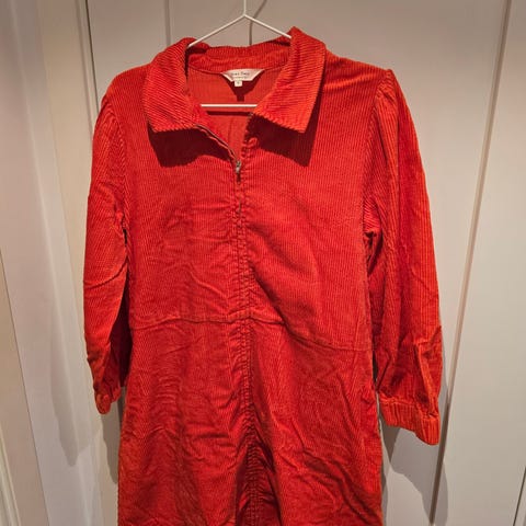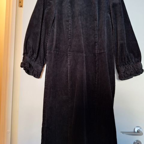 Part Two Eyvor hverdagskjole i navy cordfløyel, dame størrelse 40. Brukt kun en gang. Ble for stor. Kjolen har glidelås foran, krage og strikk mansjetter fremst på ermene. Stikklommer foran begge sider. Første bilde er hentet fra nettet til illustrasjon.