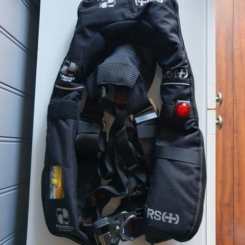Polar flytedress i størrelse S, tilpasset vekt 60-70 kg. flytedressen har fargene rød og svart, og er laget for å gi beskyttelse og komfort ved bruk. Meget behagelig å ha på, myk og varm.