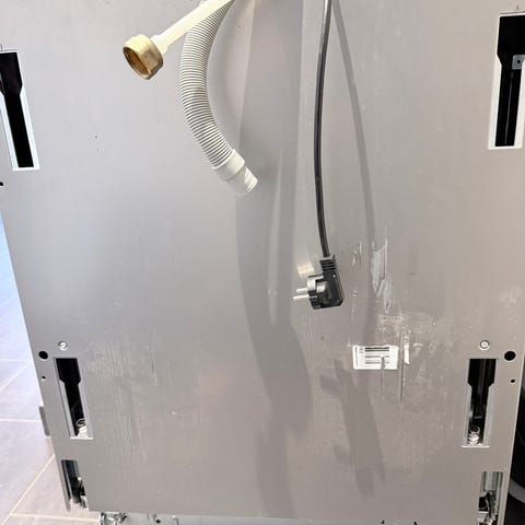 Oppvaskmaskinen er ubrukt (kjøpte feil høyde). Dessverre er festene til møbelfronten borte, men disse kan kjøpes på Elkjøp.