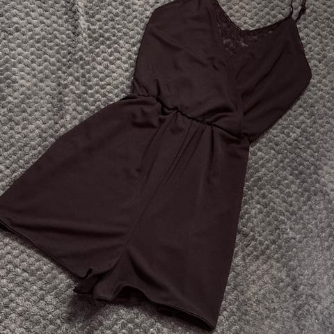 Grønn, skinnende playsuit/jumpsuit. Str S, men føles større, er strechy (jeg bruker vanligvis str L/XL). Uten bruksmerker. Bilde nr 2 beskriver fargen best