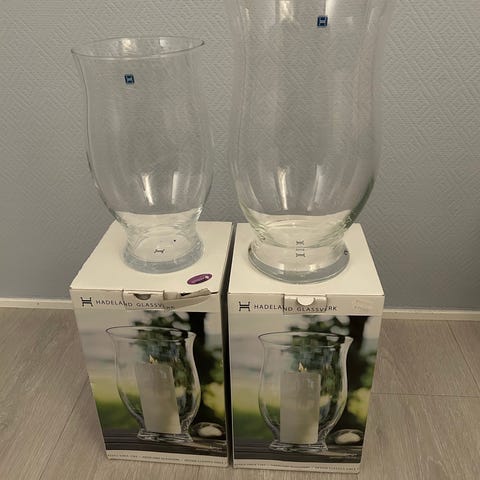 2 nydelige lyslykter i glass fra Hadeland Glassverk selges rimelig. Kr 250,- pr. lykt.