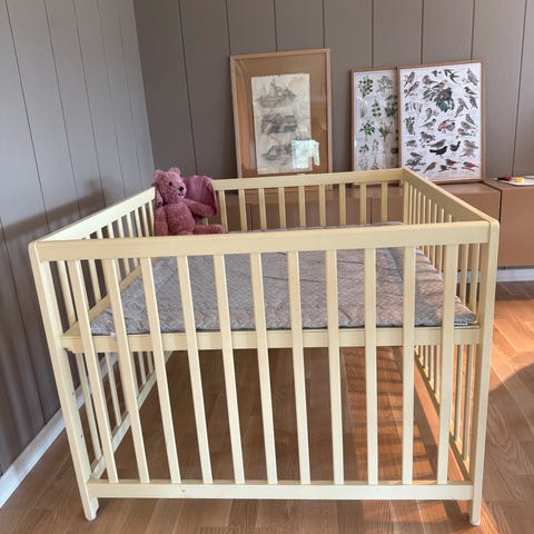 Sammenleggbart stellebord med badebalje og reiseseng gis bort. Reisesenga er hel, men får ikke slått den helt sammen på den ene kortsiden.