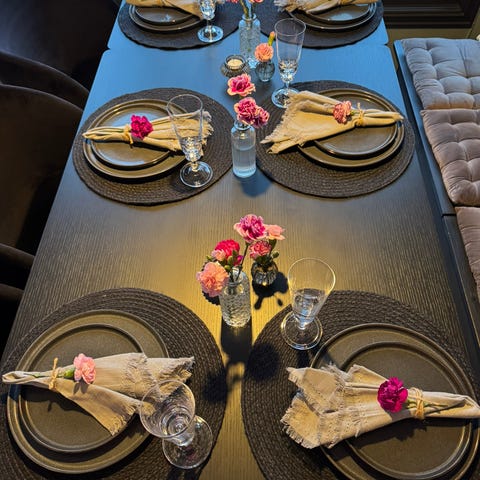 Pent brukt spisebord med noen synlige bruksmerker.