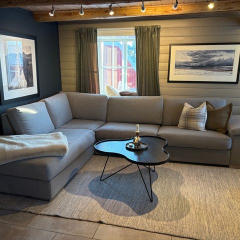 Godt brukt soffa. Ingen bruks hull. Noe falming av sol.. glidlås på putene så de kan tas av.