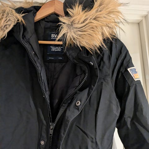 Selger en ubrukt Svea parkas. Peisen og jakken er i topp stand. Kan sende over flere bilder. Fargen kan se vasket ut på bilde, men det er bare sola.