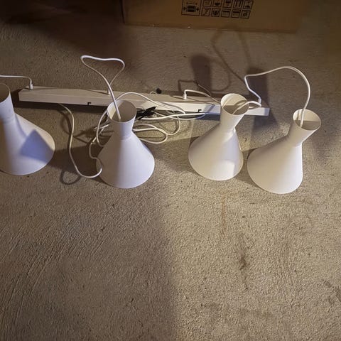 Diverse ute-/innelamper gis bort. Flertallet av disse er helt nye i orginal pakning, downlights åpnet men ikke brukt/montert.