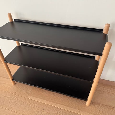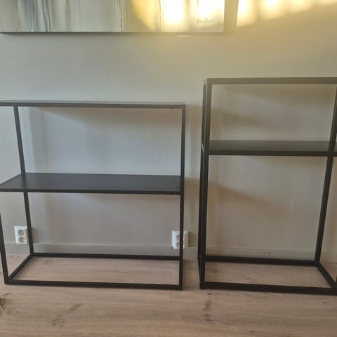Selger denne vegghyllen fra kremmerhuset i sort metall. Perfekt som krydderhylle, interiør- eller bildehylle. Henges lett opp på veggen med to skruer. Ingen synlige bruksmerker som jeg kan se.