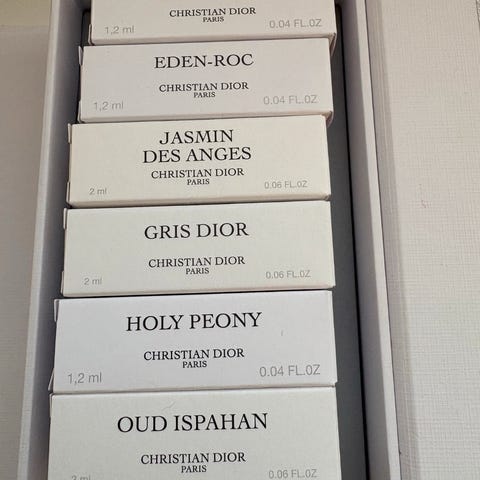 Christian Dior Bois d'Argent parfymeprøver med en volum på 1,2 ml hver. 50 kroner pr stk.