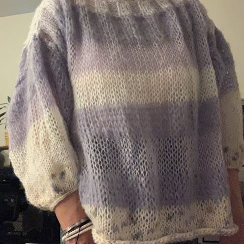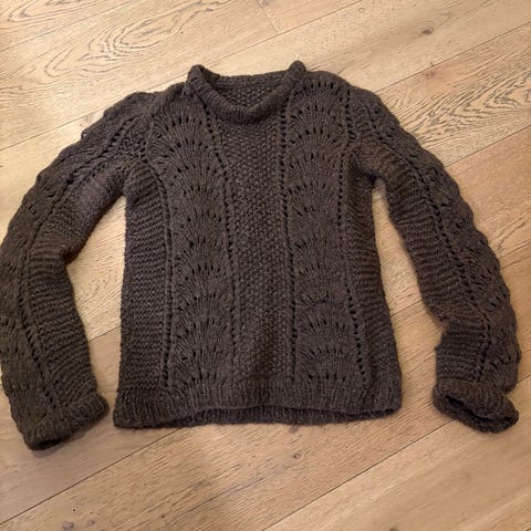 Hjemmestrikket genser i kremhvit. Ca str M.