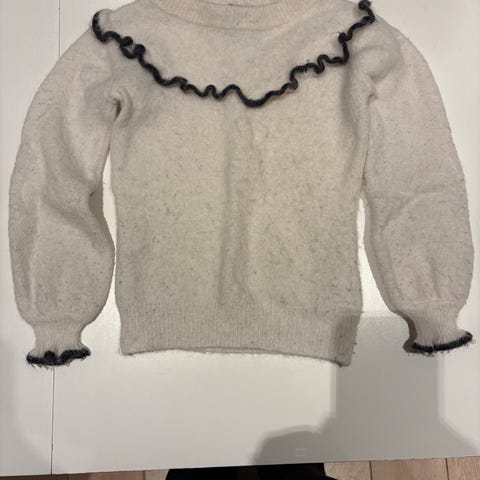 WoolLand ull genser og bukse i blå farge, størrelse 122 for jente. Laget av ull, egnet som varme klær for barn.Bukse er godt brukt har syd på 3 steder.