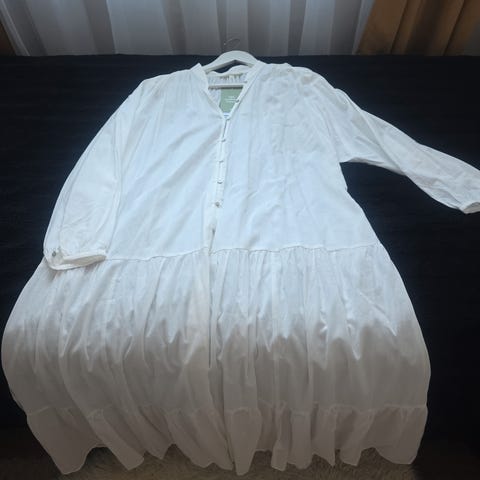 Grønn og hvit kjole med straps, i tykt stoff fra H&M, brukt en gang