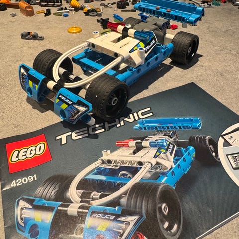 Tøff rød Offroader som kan bygges i 2 versjoner. Store hul og ekstrem god demping. Bilen styres med tannhjulet på toppen av bilen.