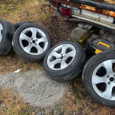 Dekkene er litt harde og bør byttes. Fine felger.