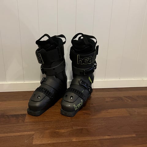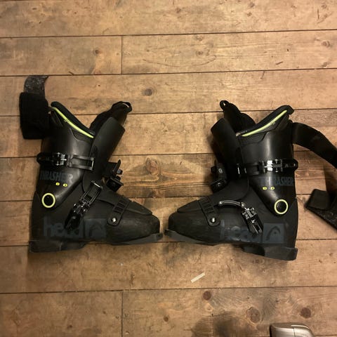 Head Trasher skistøvler er solide alpinstøvler med 80 i flex, noe som gir en god balanse mellom komfort og kontroll – perfekt for nybegynnere til middels erfarne kjørere. Støvlene er svarte med grønne detaljer, noe som gir dem et moderne og sporty utseende. De er designet for å sitte godt på foten og gi stabilitet i både preparerte løyper og variert terreng.Viser tegn på bruk med riper og merker.