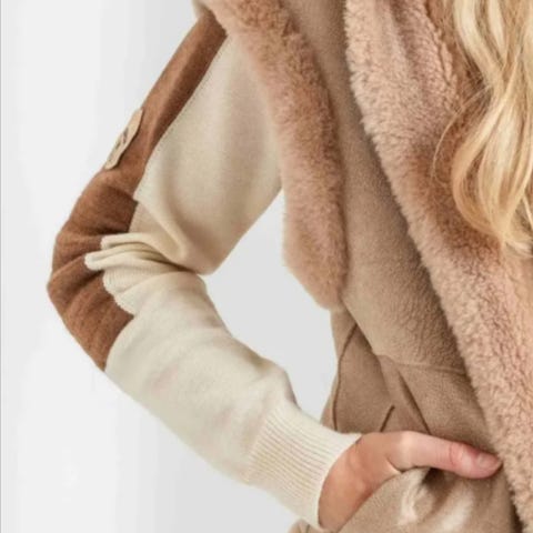 Dunjakke med oversized passform og lengde til over kneet. Jakken kan strammes inn med snøring bak og knyte bånd foran. Høy hals, stor hette og lommer med glidelås. Jakken er vindtett og lett vannavstøtende. Kun tatt av lappen, fremstår som ny.