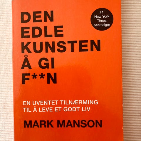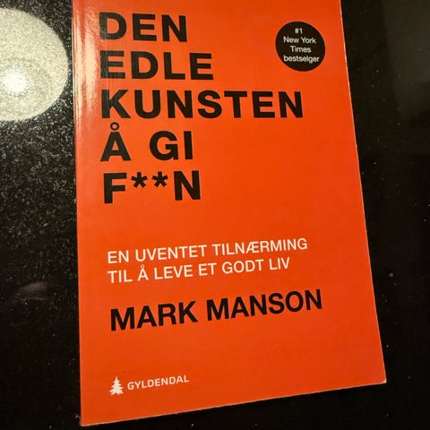 Mark Manson - Den edle kunsten å gi f**n. Boken er en norsk utgave og presenterer en uventet tilnærming til å leve et godt liv.