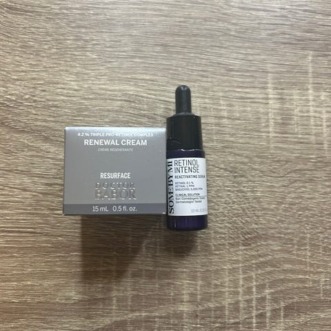 Retinol 0.5% in Squalane er en vannfri oljebasert serum med 0,5% rent retinol som reduserer fine linjer, rynker og ujevn hudtekstur, takket være fuktighetsgivende squalane. Retinal 0.2% Emulsion er en sterk retinoid-formel med 0,2% retinal som raskt firmer huden, glatter rynker som kråkesøm og øker lysstyrken.