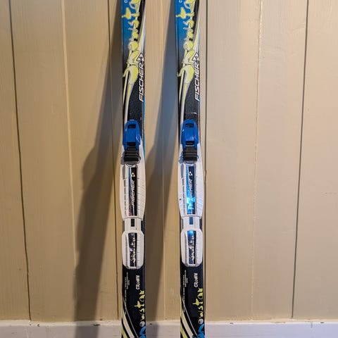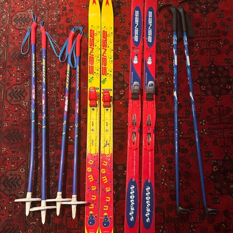 Pent brukte smørefrie klassisk langrennsski for barn.