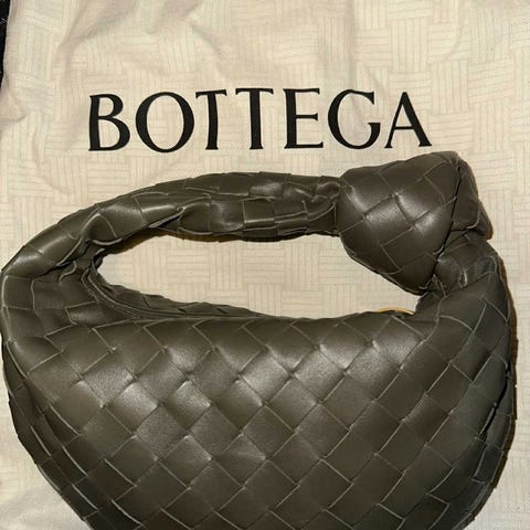 Vurderer å selge min nydelige veske fra Bottega Veneta i fargen sort. Modellen Andiamo Medium. Vesken har gulldetaljer og er laget i glatt lammeskinn.