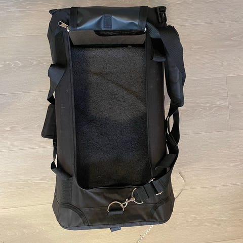 Sammenleggbar hundebur laget av metall med en avtakbar plastbunn. Buret kan foldes sammen for enkel oppbevaring og transport. Egnet for bruk til hunder av passende størrelse.