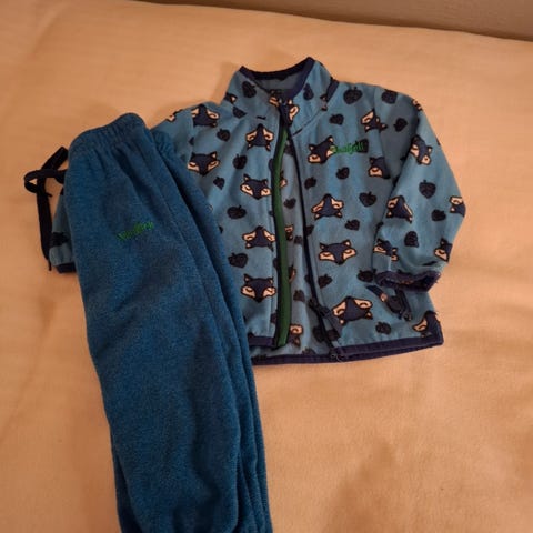En ulldress fra Reflex, en fleecebukse fra Vikafjell og en hjemmesydd deilig ullbukse med elastisk ribb i livet og rundt anklene med god passform rundt bleierumpa. Selges samlet. Passer 1-2 år