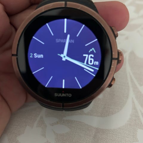 Suunto Spartan Sport smartklokke med svart rem. Klokken har flere funksjoner for trening og aktivitetssporing. Egnet for sports- og utendørsbruk.