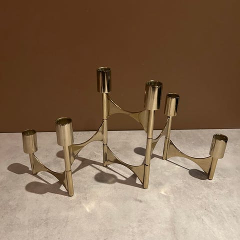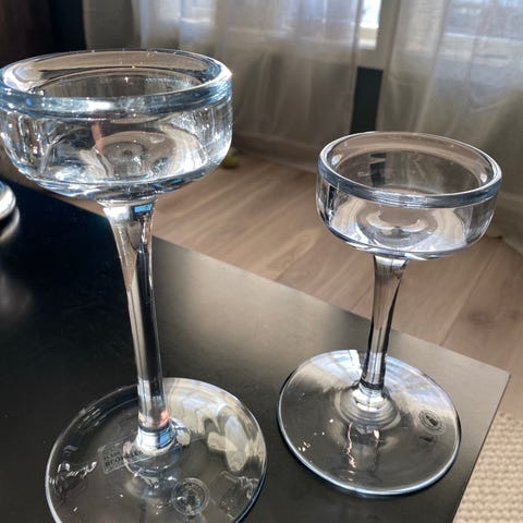 Selger to lysestaker fra Ikea. De er pent brukt, men som bilde viser, er det ene lokket løst. Noen bruksriper på toppen hvor lysene har stått.