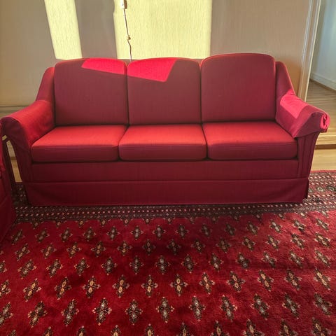 Veldig pent brukt rød sofa uten bruksmerker. Har også en treseter sofa og lenestol i samme serie.