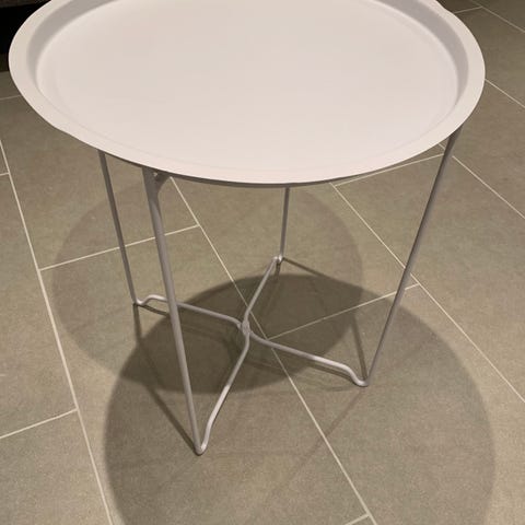 Lavt sidebord fra HM-Home i metall. Tåler å stå ute. Noen bruksmerker på bordplaten, kantene og under. Ikke lenger tilgjengelig i butikk