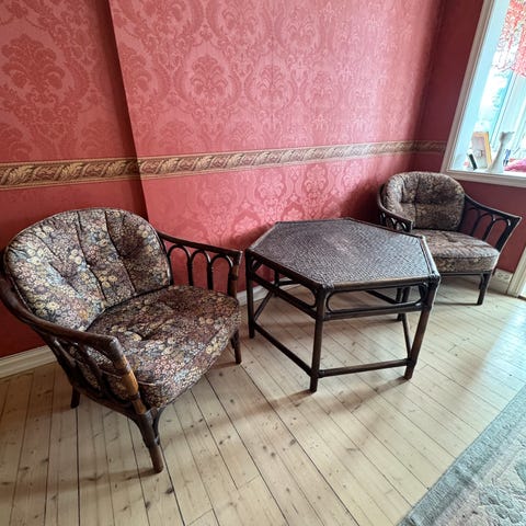 Ca 50 år gammelt . Solide møbler men noen mørke flekker pga sto utendørs en kort periode.