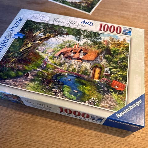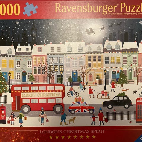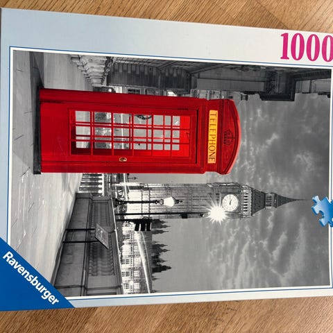 Ravensburger London The Thames puslespill med 1000 biter. Puslespillet viser et detaljert bilde av The Thames og omkringliggende områder.