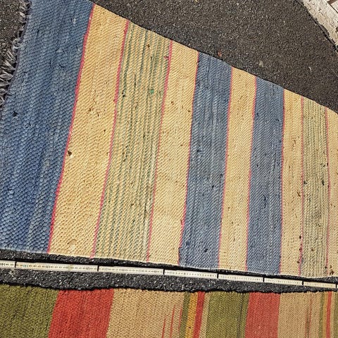 2 vintage ryer fra IKEA i pastellfarger. Merk at den rosa har noen flekker/bruksmerker. Jeg har ikke vasket de, men vil tro at flekkene lett går bort ved vask.