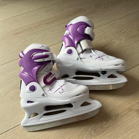Selger et par Ice Force SkaterX ishockeyskøyter for barn, justerbare fra str. 30 til 33. Skøytene har en stilig kombinasjon av svart, hvitt og rosa, og kommer med justerbar lukking som gir svært god passform. Egnet både til lek og enkel ishockeybruk.
