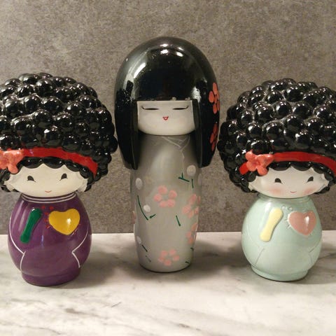 Dette er håndmalte Kokeshi-dukker i tre fra Lucie Kaas, designet av Sketch.inc ved Becky Kemp. De avbildede karakterene inkluderer Prince, Gogo Yubari, Elle Driver og Mia Wallace.Hver dukke er laget av bøketre og forseglet med satenglakk for en jevn finish.