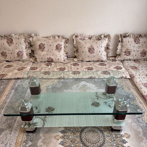 Rundt glassbord med metallramme. Bordet har to glassflater og en sirkulær design. Passer til oppbevaring eller som salongbord i stue eller andre rom.